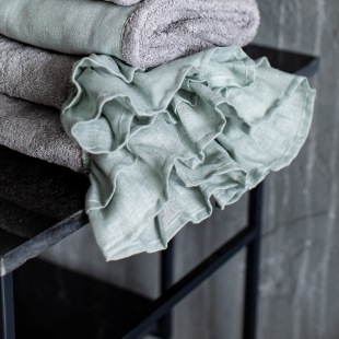 Bella Donna - Weiches Frottee Handtuch, veredelt mit einem Volant aus zarter Leinengaze – ein sinnlicher Genuss, der uns Frauen immer wieder bezaubert.