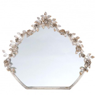 Die dekorative Blüten- und Blätter Girlande betont die zauberhafte Form des Spiegels.