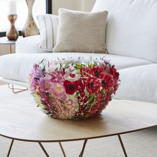 Ein Kunstobjekt mit farbenprächtigen authentischen Blüten Arrangements, das die positive visuelle Kraft von Farben vereint und unmittelbar die Stimmung verwandelt.