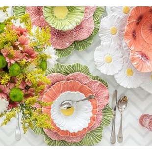 In Handarbeit wird diese außergewöhnliche Majolika-Keramik von der portugiesischen „Fábrica de Faianças Artisticas Bordallo Pinheiro“ hergestellt. Die schöne, natürliche Form und die glänzende Glasur bringen das Blütenmotiv besonders schön zur Geltung.