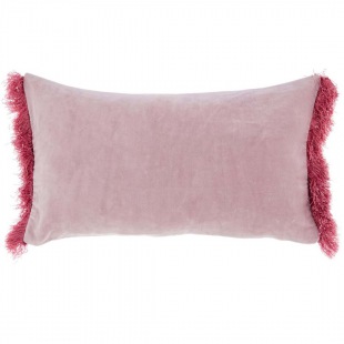 Seidenzarter und sanft glänzender Blanchette Baumwolle Samt Velours in einem attraktiven Rosé, die feine Franseneinfassung akzentuiert mit Raffinesse.