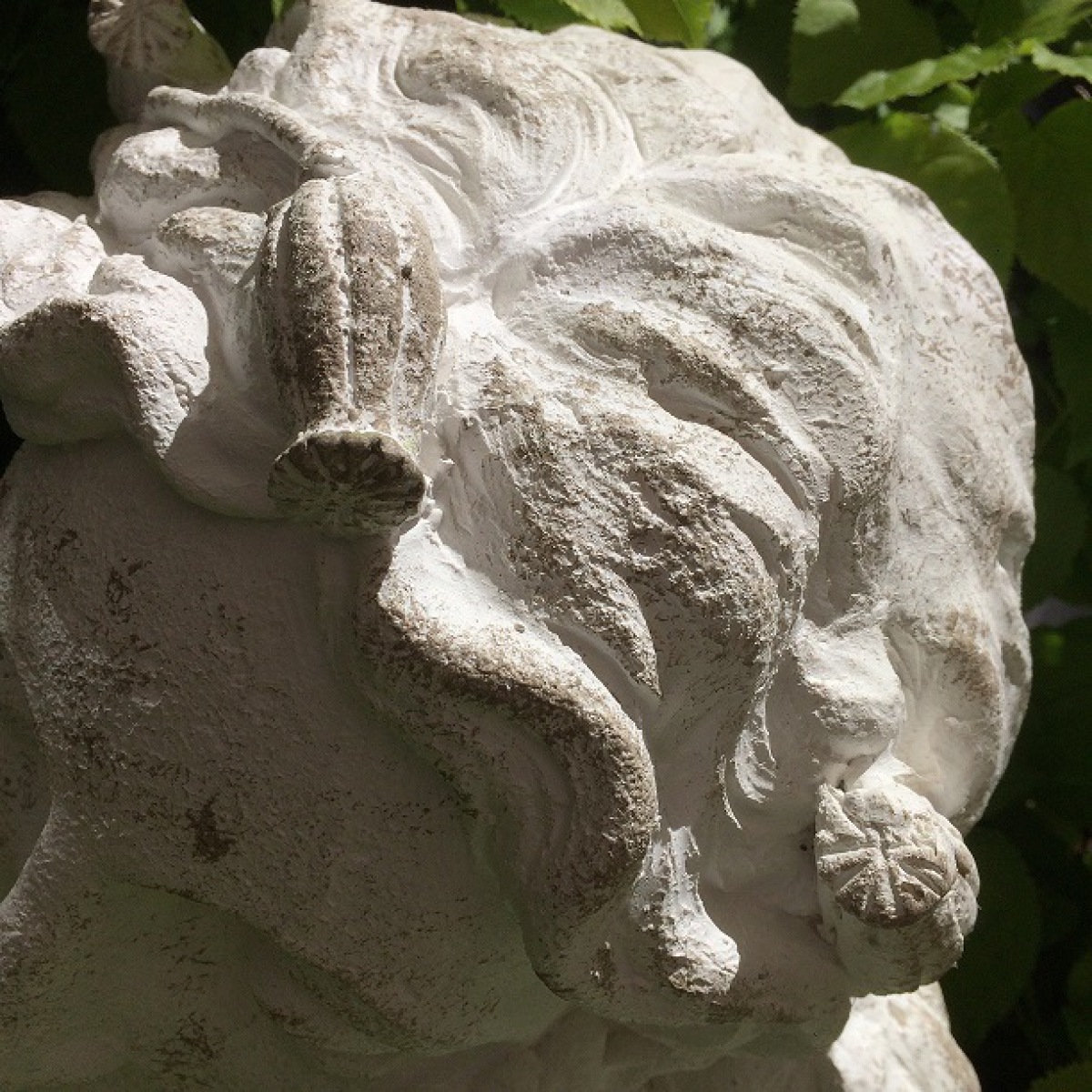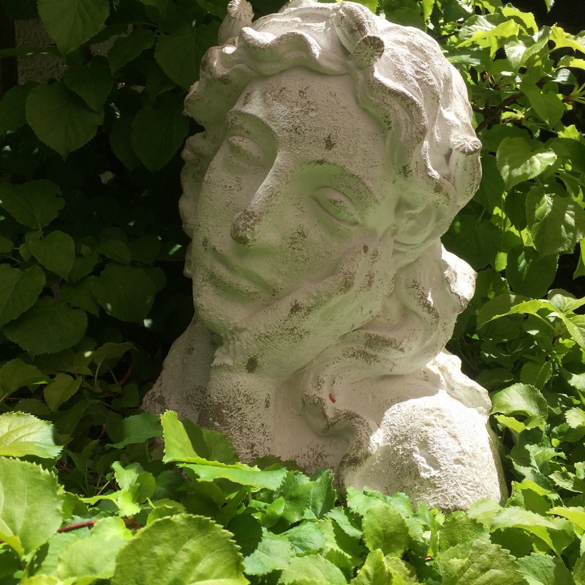 Witterungseinflüsse verändern die weiß/steingraue Patinierung der klassischen Frauenbüsten und verleihen nach und nach den Charme der Zeit. Frostfest, wir empfehlen trotzdem einen geschützten Platz im Winter.
