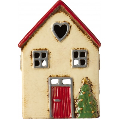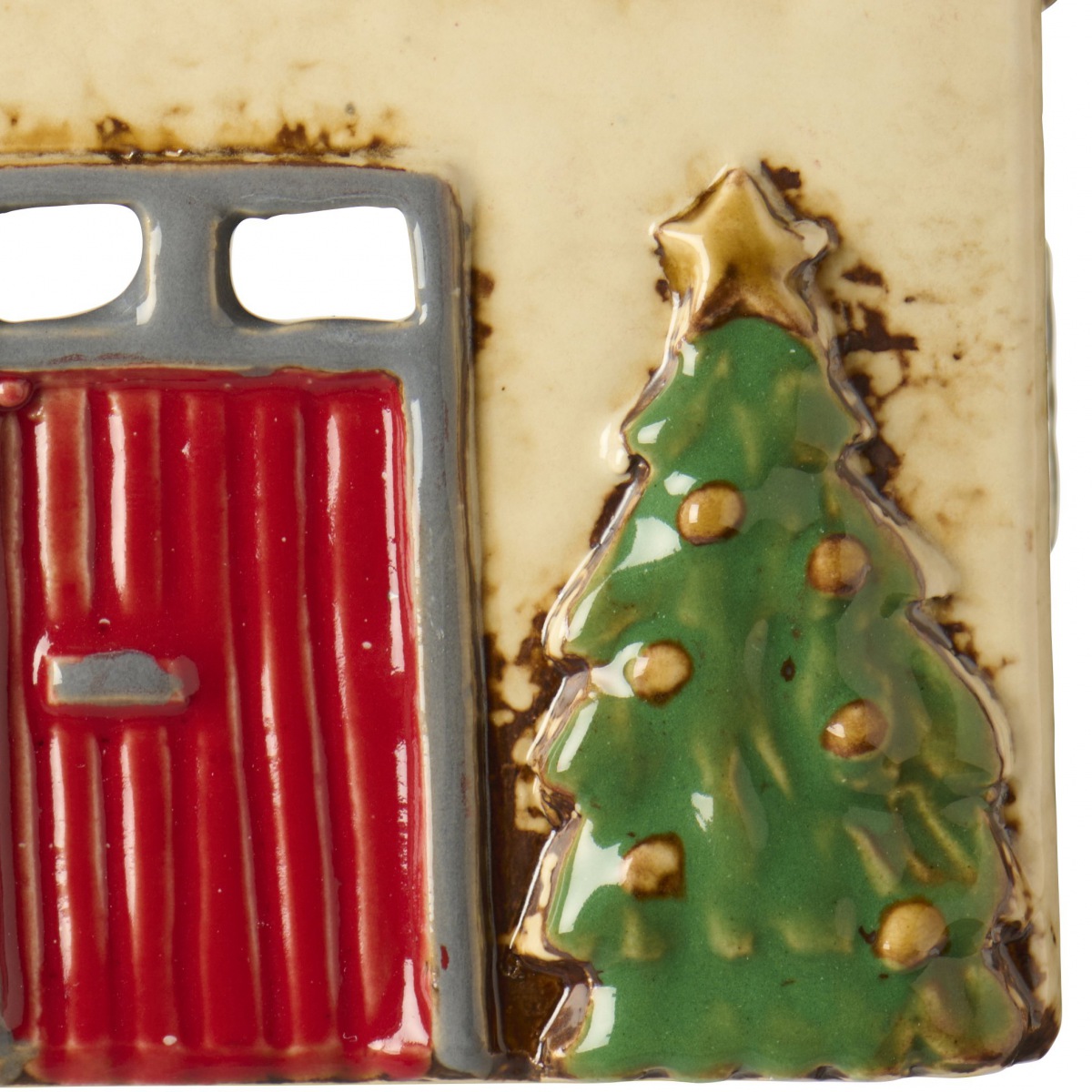 Ein Teelicht im Inneren des von Hand gefertigten, bemalten und glasierten Lichterhäuschen Kopenhagen No2 erhellt und bezaubert in der dunklen Jahreszeit mit poetischen Licht- und Schatteneffekten. Die zauberhaften kleinen Details der Fassaden sind plastisch geformt.