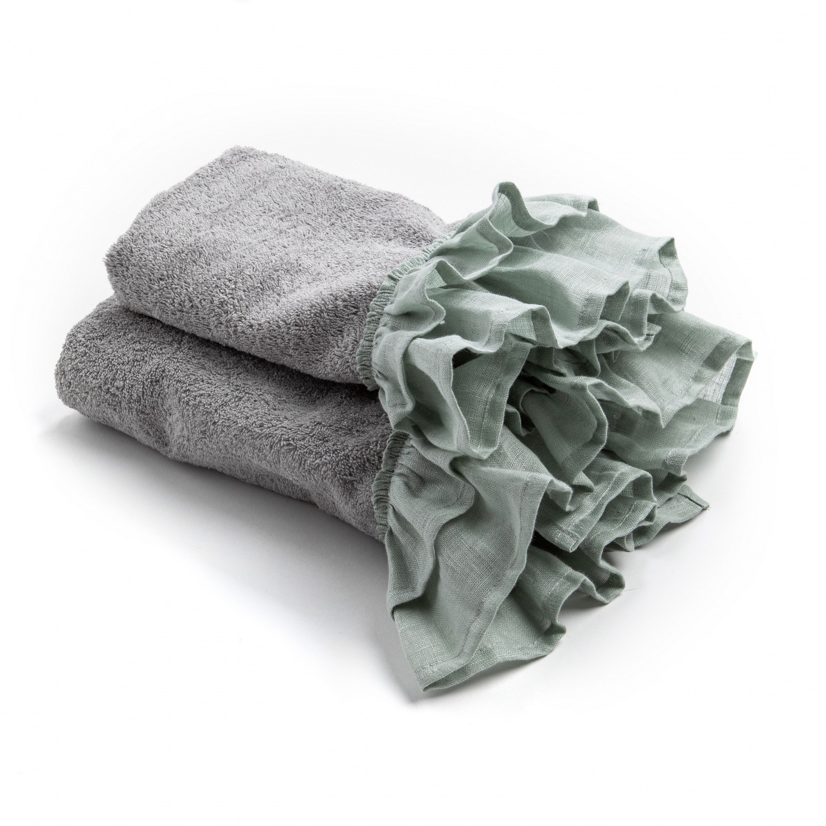 Bella Donna - Weiches Frottee Handtuch, veredelt mit einem Volant aus zarter Leinengaze – ein sinnlicher Genuss, der uns Frauen immer wieder bezaubert.