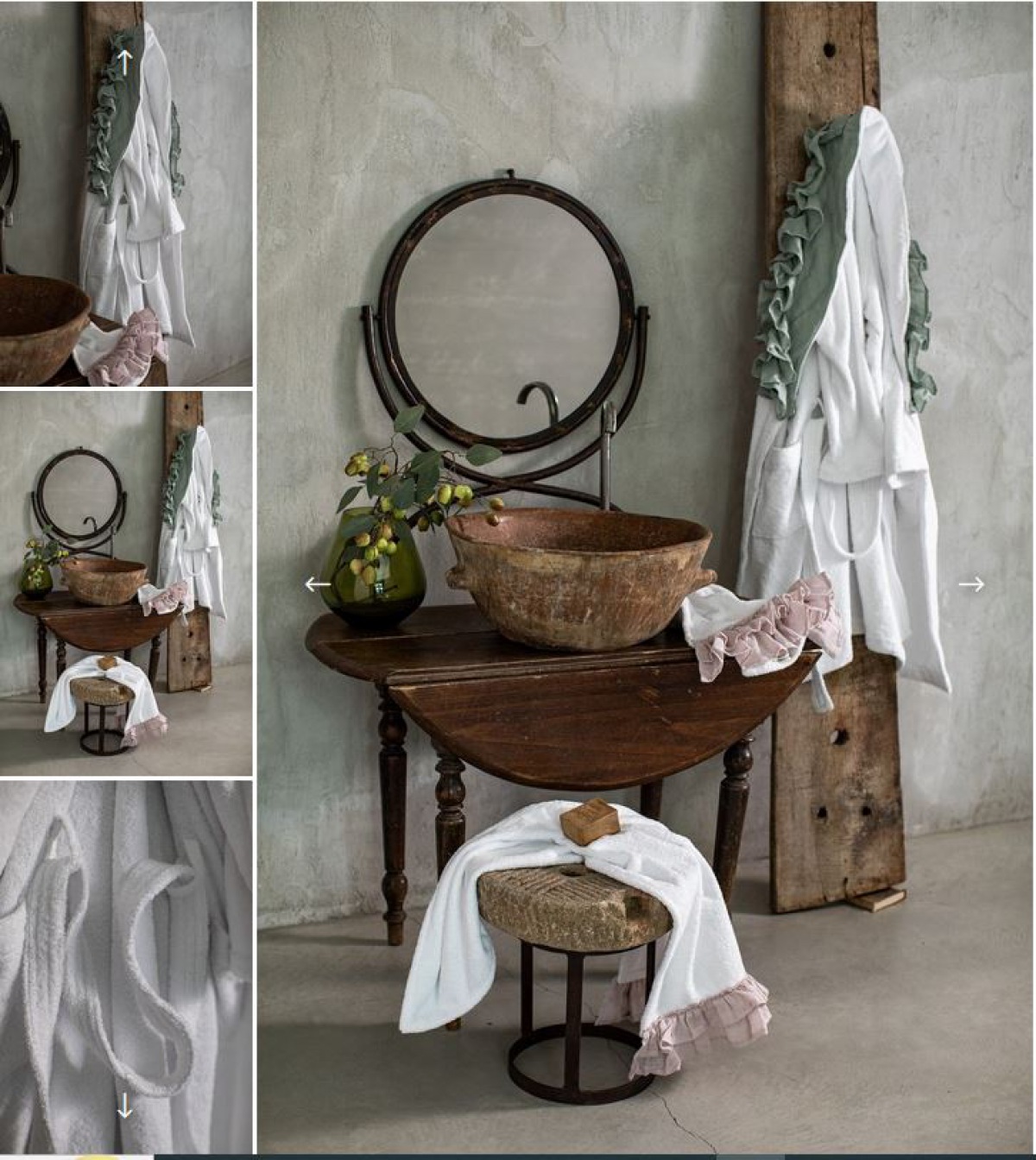 Bella Donna - Weiches Frottee Handtuch, veredelt mit einem Volant aus zarter Leinengaze – ein sinnlicher Genuss, der uns Frauen immer wieder bezaubert.
