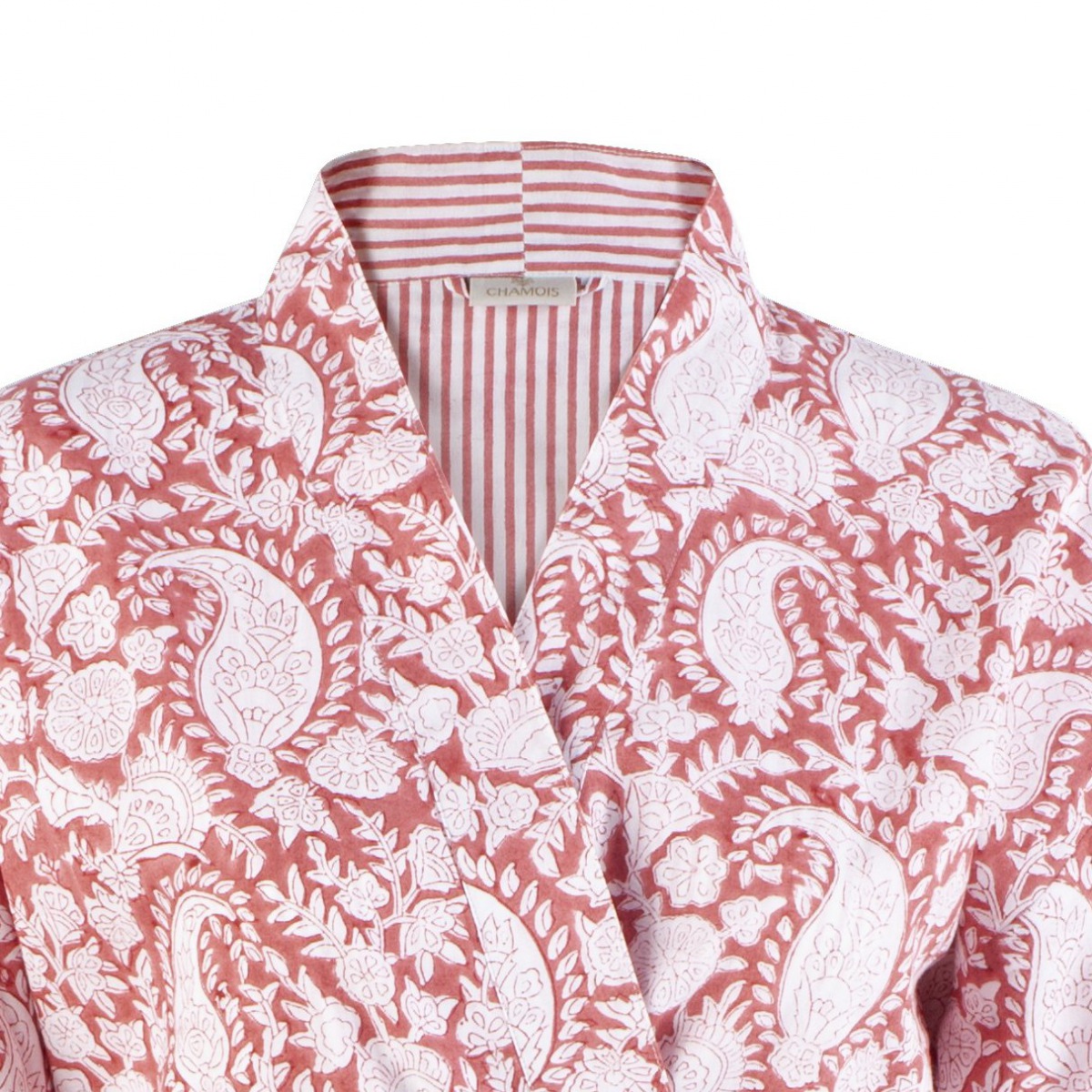Dieser Kimono in frischen Himbeer- und Weißtönen schmeichelt jedem Teint und jeder Silhouette. Der lockere Schnitt fällt luftig, schenkt Bewegungsfreiheit und sorgt für ein angenehm leichtes Tragegefühl.