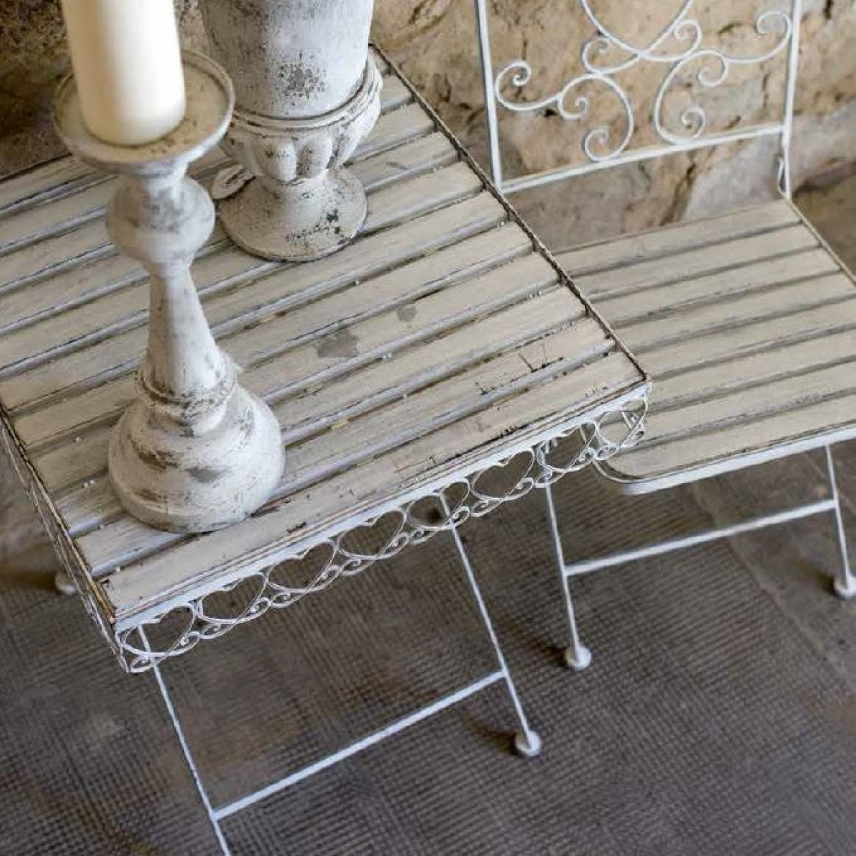 Nostalgischer, bequemer und klappbarer Stuhl mit lackiertem Eisengestell mit lasierter Holzpaneel-Sitzfläche.