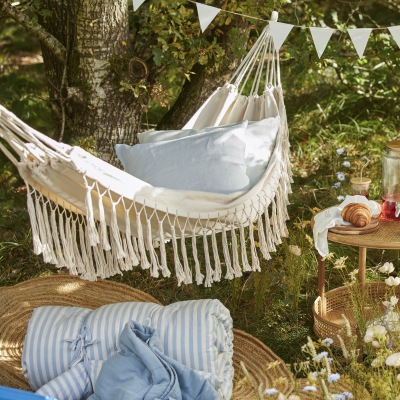 Herrlich entspannen und träumen lässt es sich in dieser schönen Hängematte.