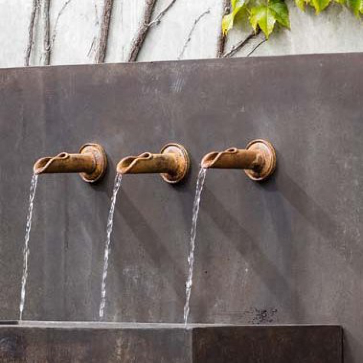 Gewicht circa 100 kg Material: Fiberstone, frostfest, Wasserausläufe in Eisenoptik