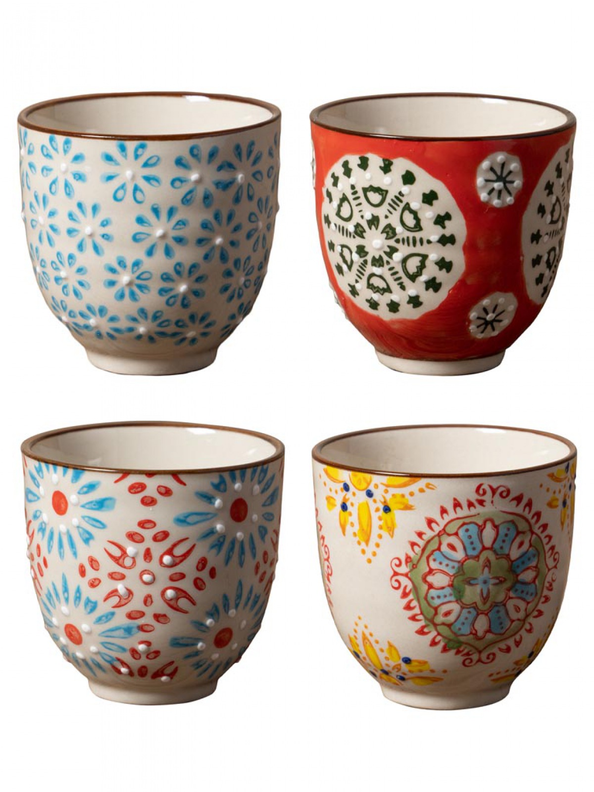 Maße: H 6,5 x Durchmesser 6,7 cm Material: handbemalt mit kleinen Struktur Akzenten, Steingut, spülmaschinenfest.