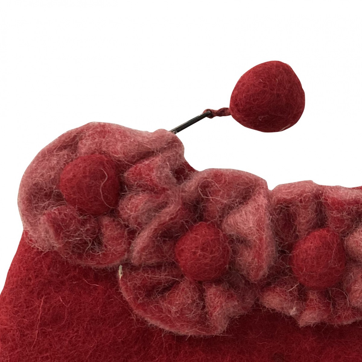 Material: Fair Trade zertifiziert, handgefertigtes Unikat aus neuseeländischer Wolle (gefilzt), gefüttert mit silberfarbener Kunstseide, Reißverschluss