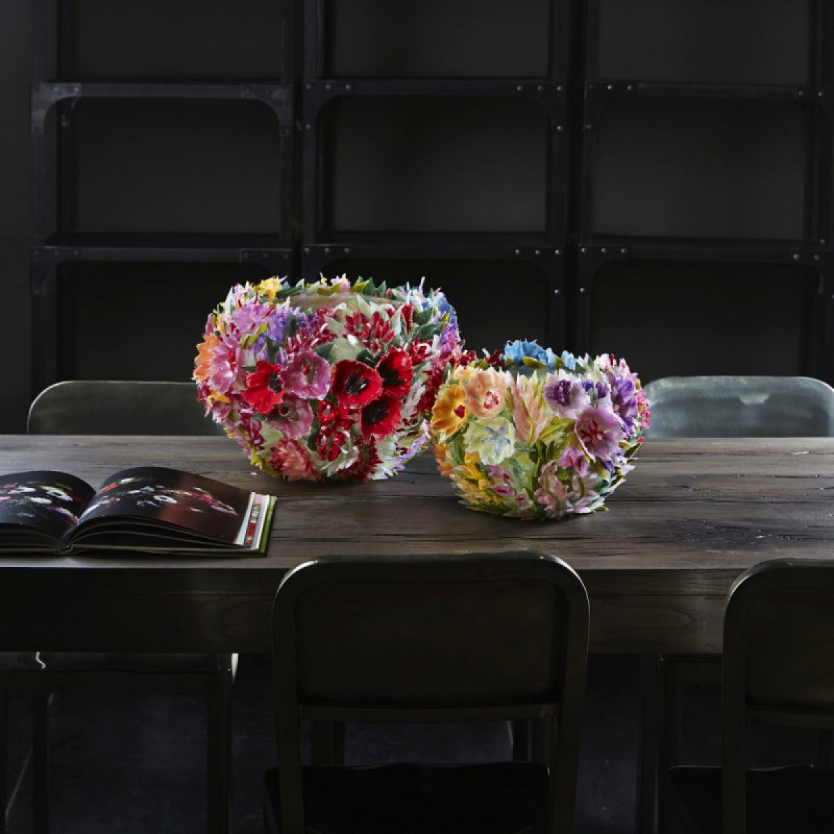 Ein Kunstobjekt mit farbenprächtigen authentischen Blüten Arrangements, das die positive visuelle Kraft von Farben vereint und unmittelbar die Stimmung verwandelt.