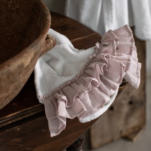 Bella Donna - Weiches Frottee Handtuch, veredelt mit einem Volant aus zarter Leinengaze – ein sinnlicher Genuss, der uns Frauen immer wieder bezaubert.