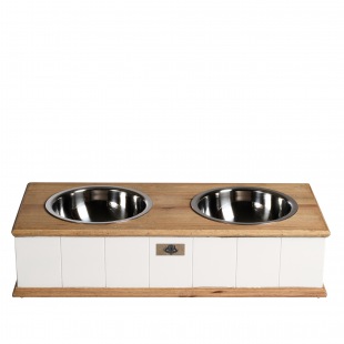 ist dafür ideal, Stil und Funktionalität gehen Hand in Hand. Der Napf kann zum Reinigen herausgenommen werden, das Holz ist gut abwischbar.