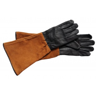 Leicht gefütterter Lederhandschuh mit extralanger Lederstulpe für optimalen Schutz von Haut und Kleidung.