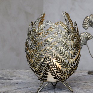 Das von Blattzweigen umgebene Kerzenlicht reflektiert die zarten Zweige dekorativ und schenkt ein stimmungsvolles Ambiente.