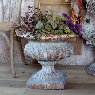 Flair romantique - die edle Antik Patinierung verleiht der Pflanzschale nostalgisches Flair.