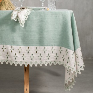 STIL - ergänzen Sie edel die Tischdecke mit den 100% Leinen Servietten & Tischsets (45 x 45 cm) in der Grundfarbe der Bordüre und Salbei Cut out Stickerei.