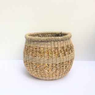 Stabil und sorgfältig geflochtener, formschöner Jutekorb für Dies & Das im Bad oder auch als Übertopf für Pflanzen. Die goldfarbenen Bänder setzen einen modernen Akzent, eine schöne Symbiose von Natur und Style.