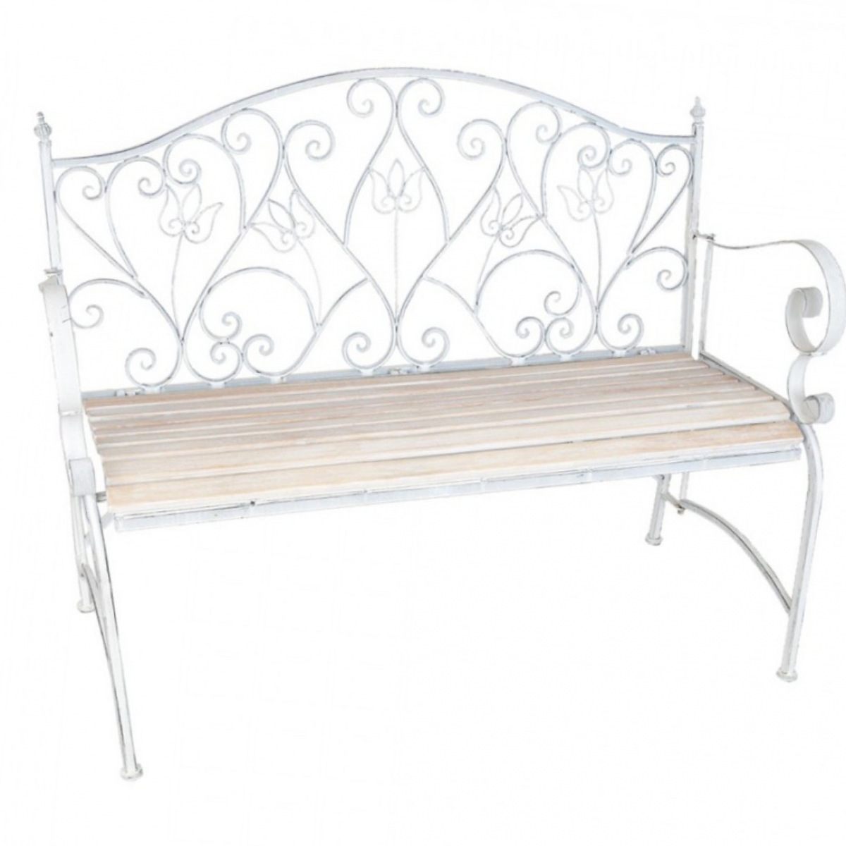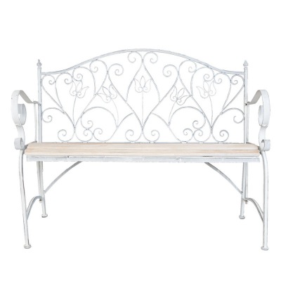Diese bezaubernde Eisenbank mit geschmiedeten Blumenverzierungen ist auch für den kleineren Balkon geeignet und verleiht romantisches Flair wo auch immer Sie sie plazieren.