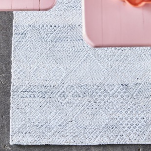 Hochwertige, handgewebte Kunstfaserteppich aus PET haben eine behagliche "Baumwolle-Optik", greifen sich angenehm an, sind formstabil und pflegeleicht. Flecken können abgewischt werden, bei stärkeren Verschmutzungen auch waschbar (die Kunstfaser trocknet schnell, bitte nicht in den Trockner). Geeignet auch für den outdoor-Bereich: eine spezielle UV-Behandlung schützt die Farben.