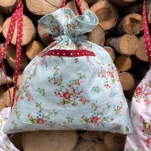 100% Baumwolle Beutel mit kleiner Tasche und hübschen Zugaband, sehr schön verarbeitet..
