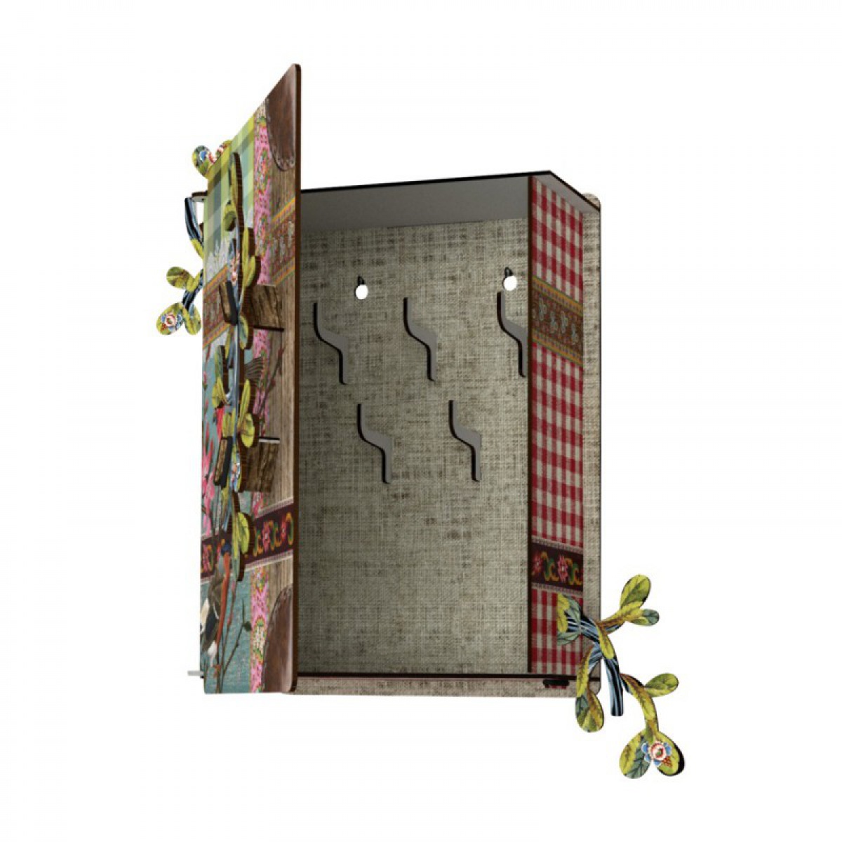 Ein farbenfroher, dekorativer Schlüsselschrank mit praktischen Haken.