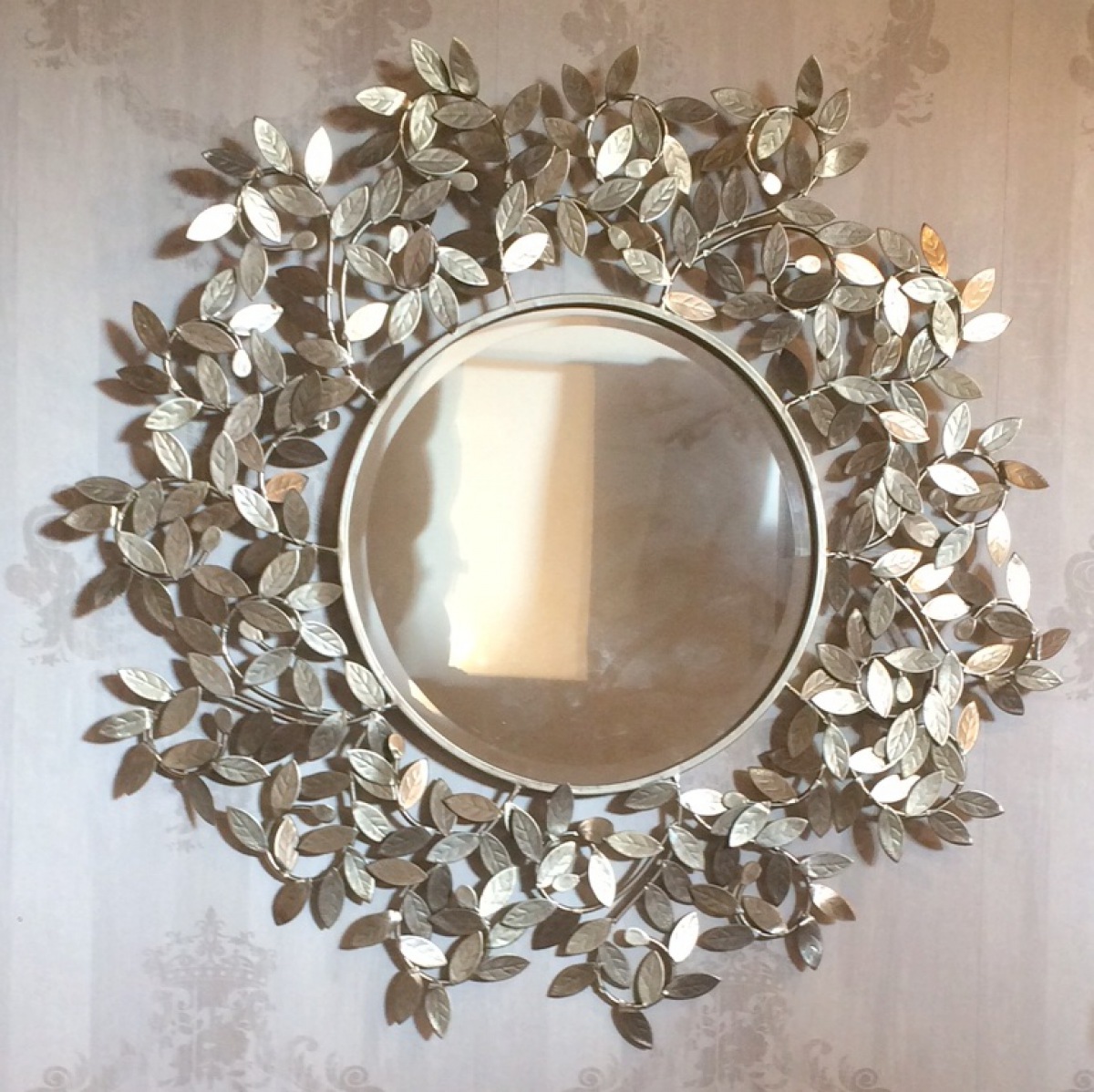 Spiegel und opulenter Wandschmuck – kunstvoll stilisierte Blätter und Äste aus Vollmetall für einen dekorativen Sujet Akzent im Raum