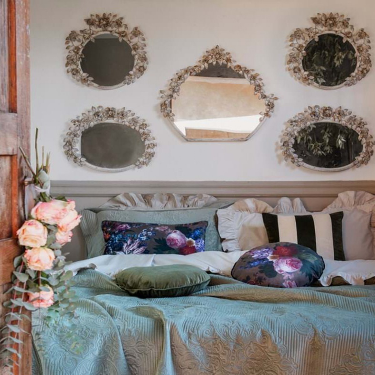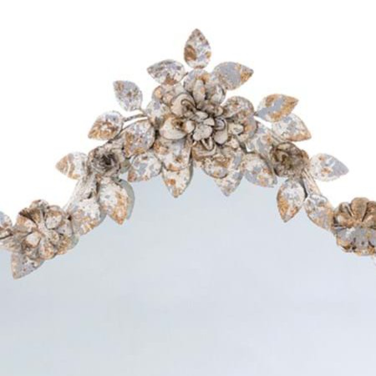 Die dekorative Blüten- und Blätter Girlande betont die zauberhafte Form des Spiegels.