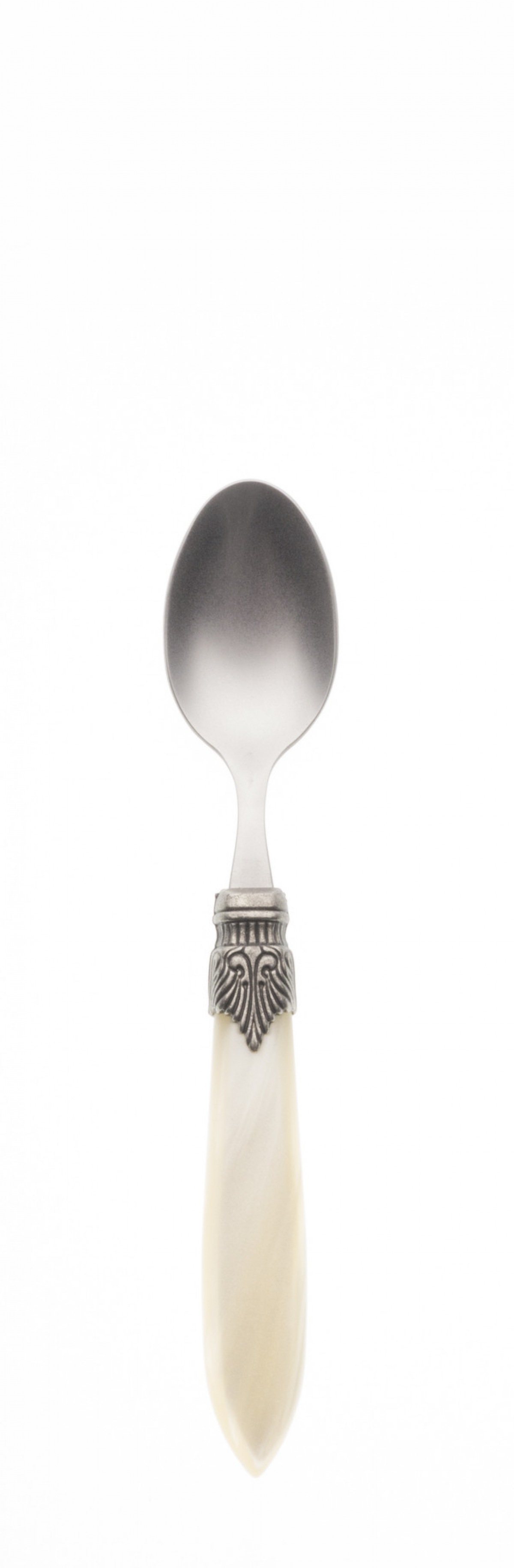 Die gabel besteht aus rostfreiem Edelstahl, einem Kunststoff-Acrylat Griff mit einem leicht glänzenden Perlmutt-Effekt (die Farbe nutzt sich nicht ab, da sie auf den gesamten Griff aufgetragen wird und nicht als dünne Beschichtung auf der Oberfläche) und einem Aluminiumornament (Montur) in der Mitte. Die Materialien sind von sehr guter Qualität.