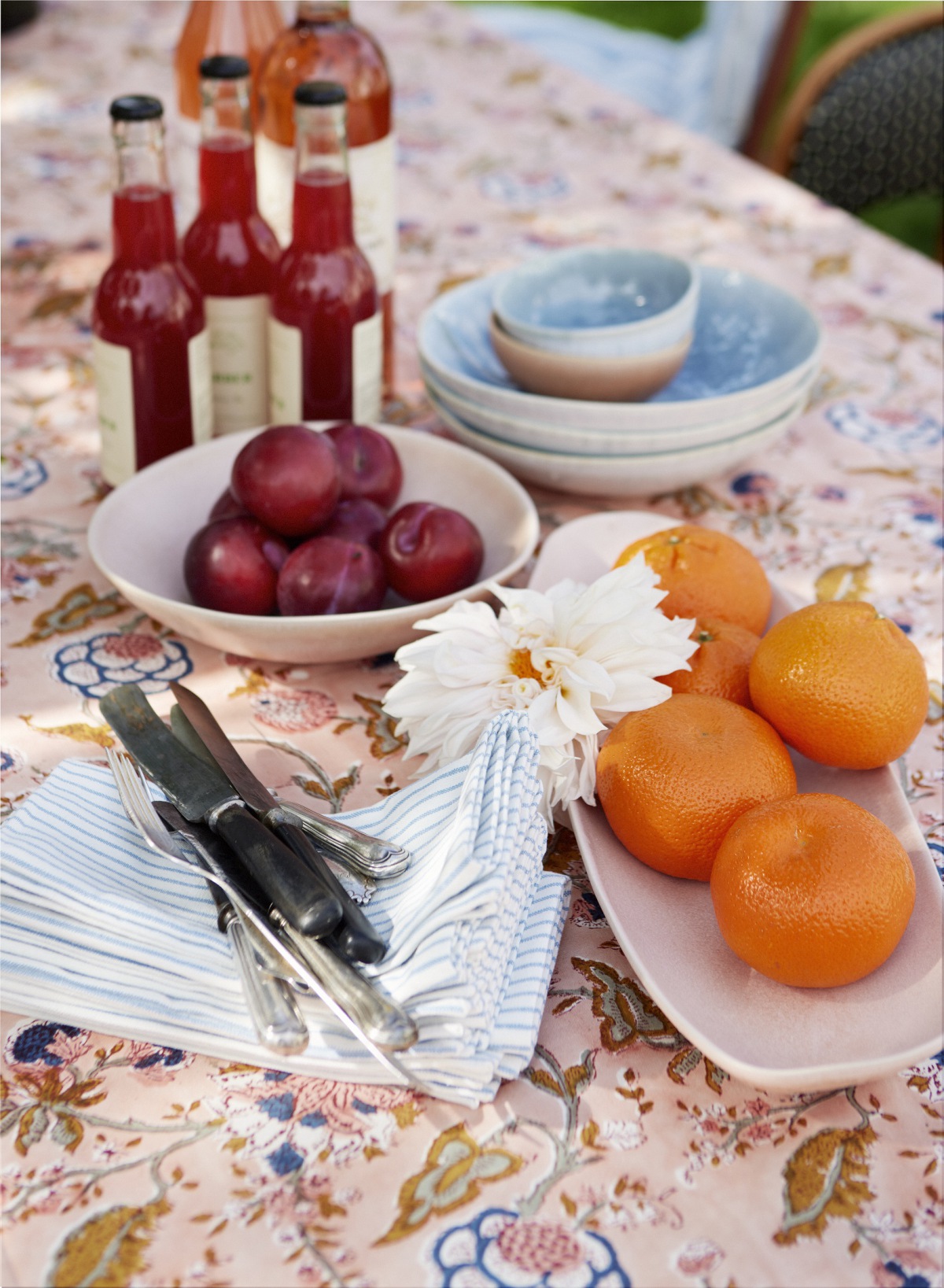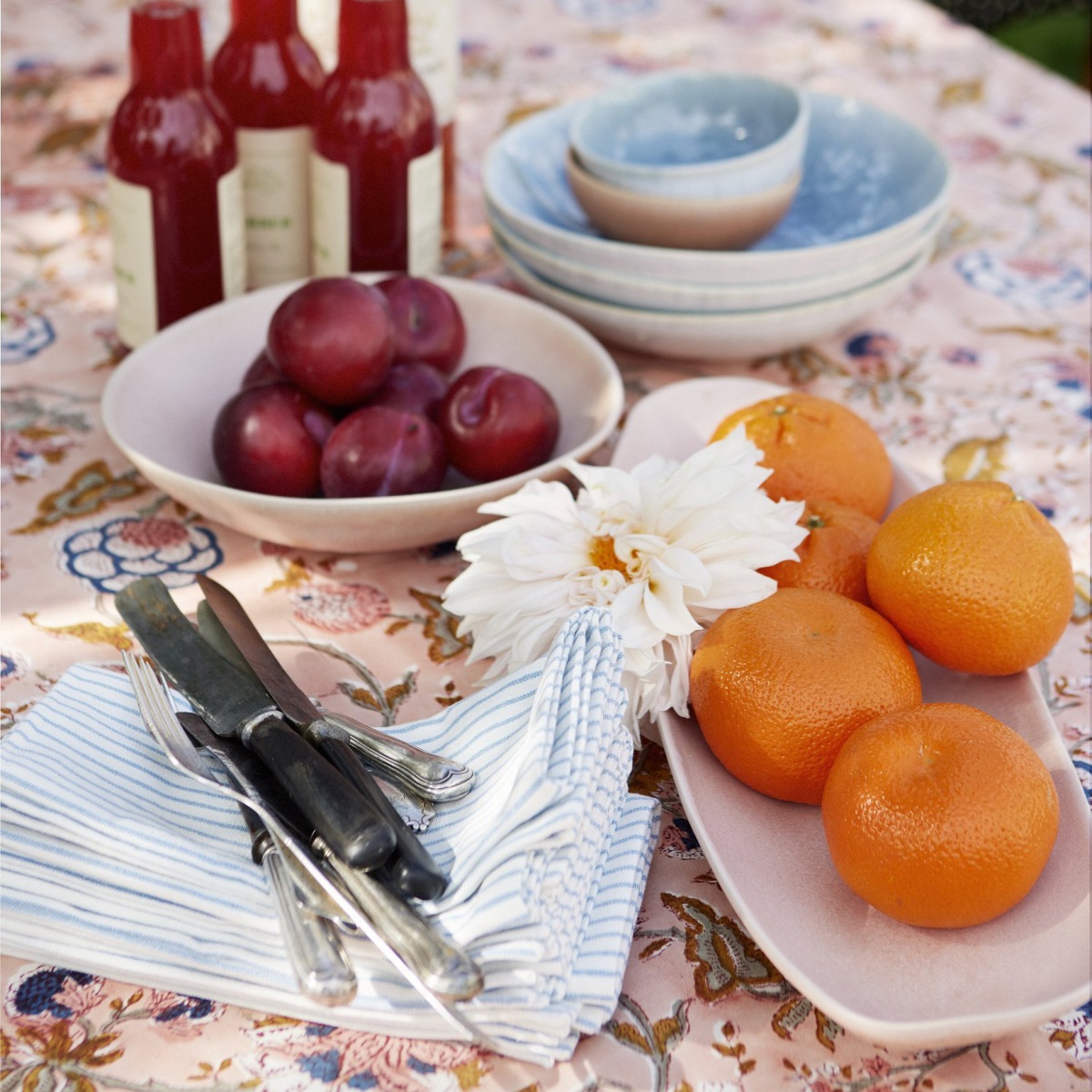 Die musterschönen Tischdecken werden von Hand bedruckt, jede ist ein Unikat mit besonderem Charme.