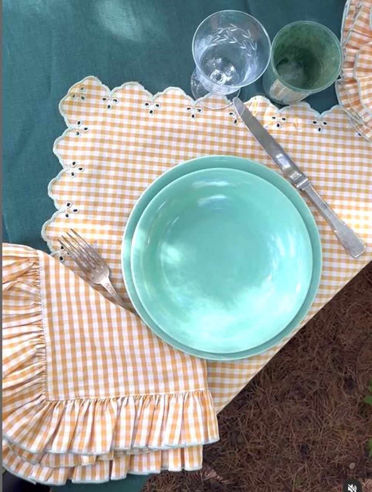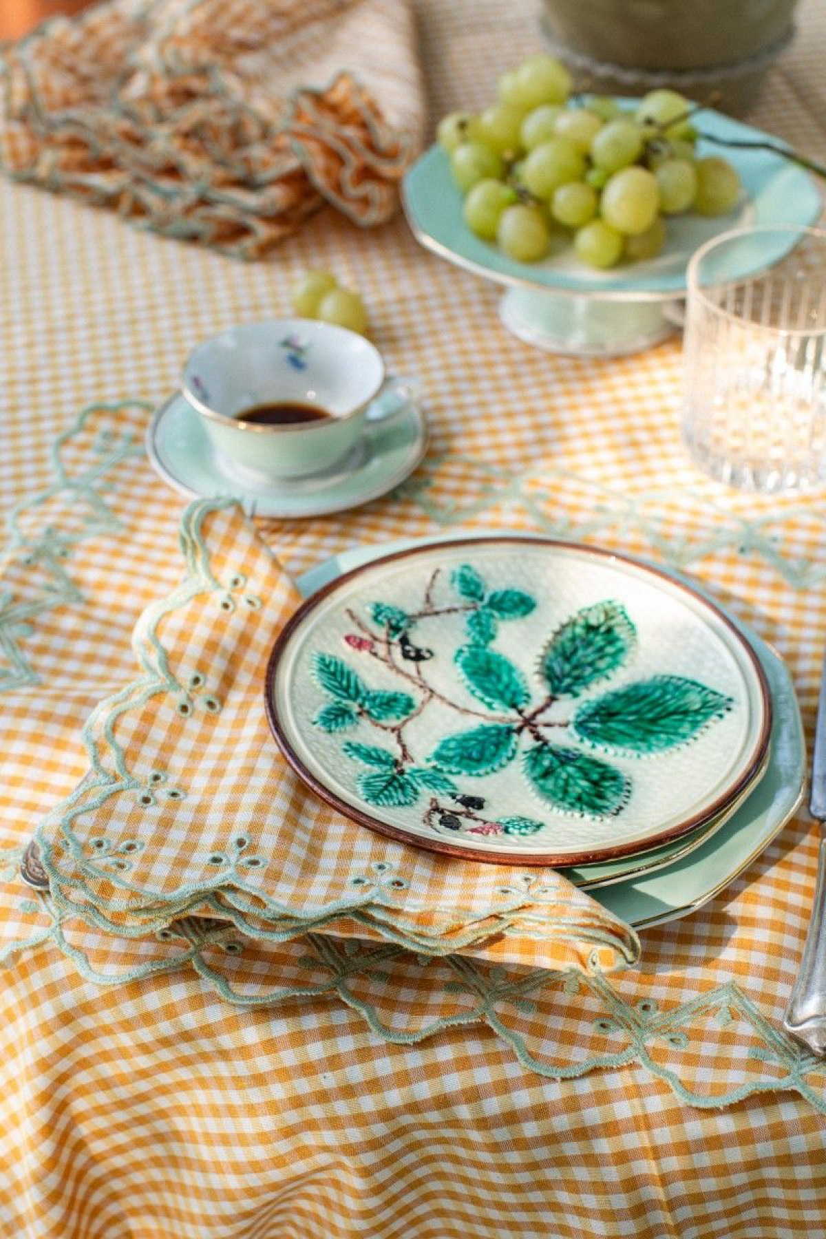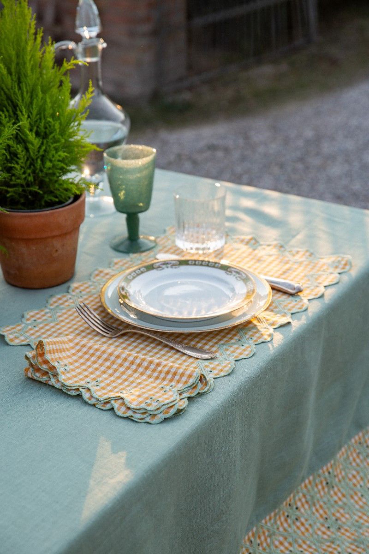 - oder der karrierten Baumwolle Tischdecke FILO gelb.