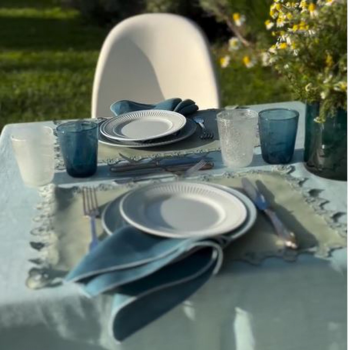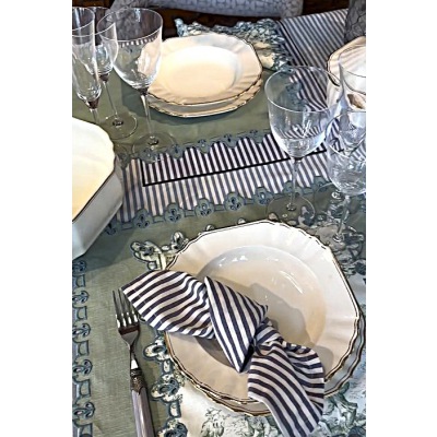 Die akzentuierende Bordüren Stickerei erinnert an stilvolle, nostalgische französische Tischwäsche, immer passend zu jedem Einrichtungsstil und geeignet für jede Jahreszeit.