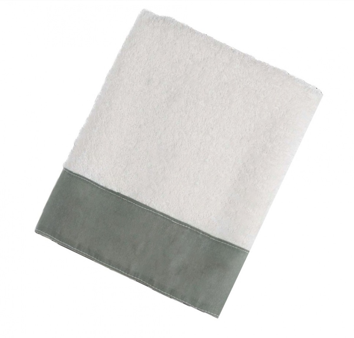 Das kleinere Handtuch hat eine unifarbene/salbei Bordüre.