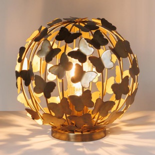 Die dekorative Leuchte ist mit einer Vielzahl an Schmetterlingen verziert, bei Beleuchtung erzeugen Licht- und Schatteneffekte ein lebhaftes, stimmungsvolles Ambiente.