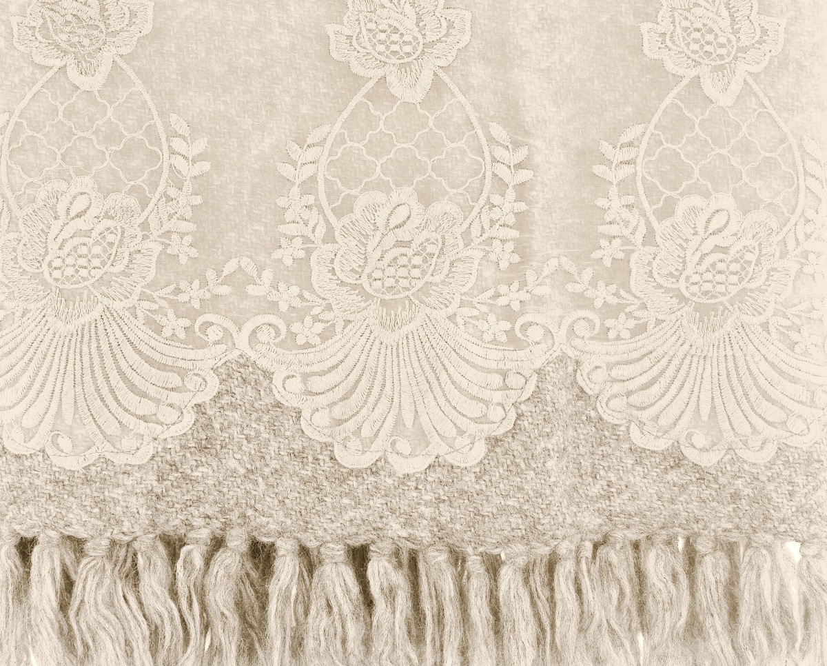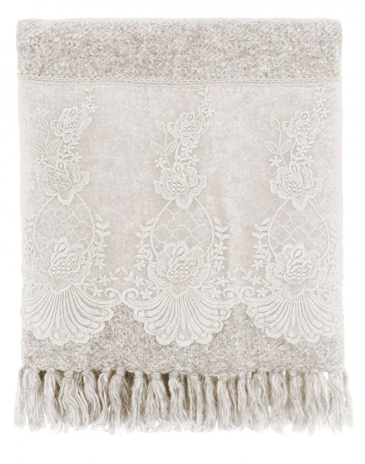 Kuschelweicher, grau-crème melierter Stoff mit "Wolle" Optik. Italienische Finesse: kombiniert mit eleganter Spitze eine ganz besondere Kombination.