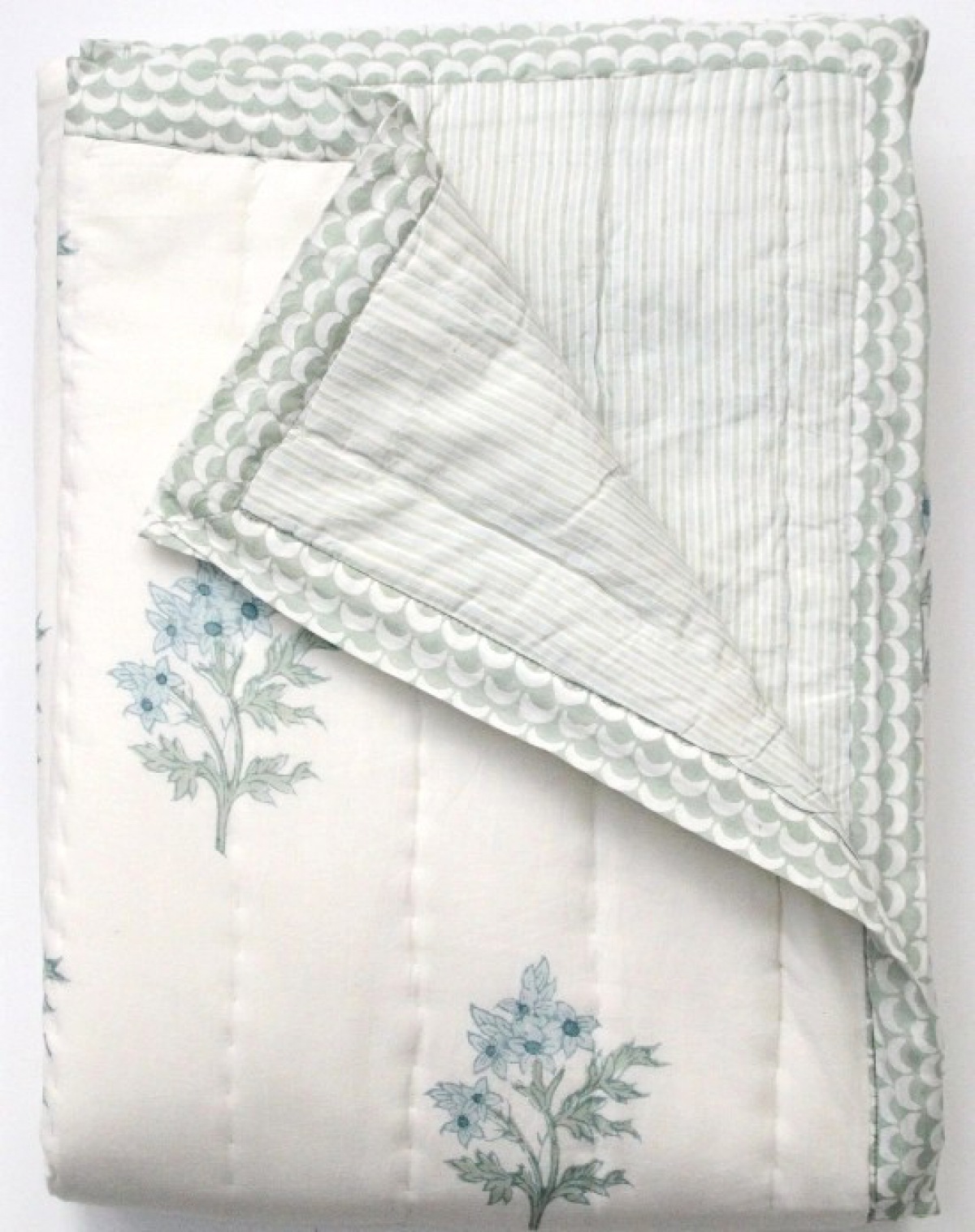 Diese abgesteppte Quilt-Decke aus weicher und leichter Baumwolle ist so schön und angenehm, dass sie als Tagesdecke, leichte Sommerdecke, Picknickdecke oder als Überwurf für die Couch immer eine Zierde und Freude ist.