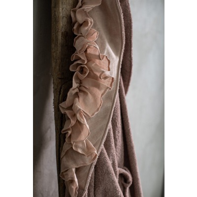 Aparter, kuschelweicher Bademantel, der Volant verleiht einen souveränen femininen Akzent.