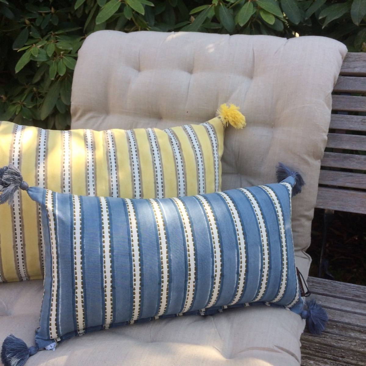 Kombinieren Sie Bungalow Kissen in unterschiedlichen Größen, Mustern und Farben - jede Kombination ist schön, die typischen Bungalow Farb- und Musterfamilien harmonieren miteinander.