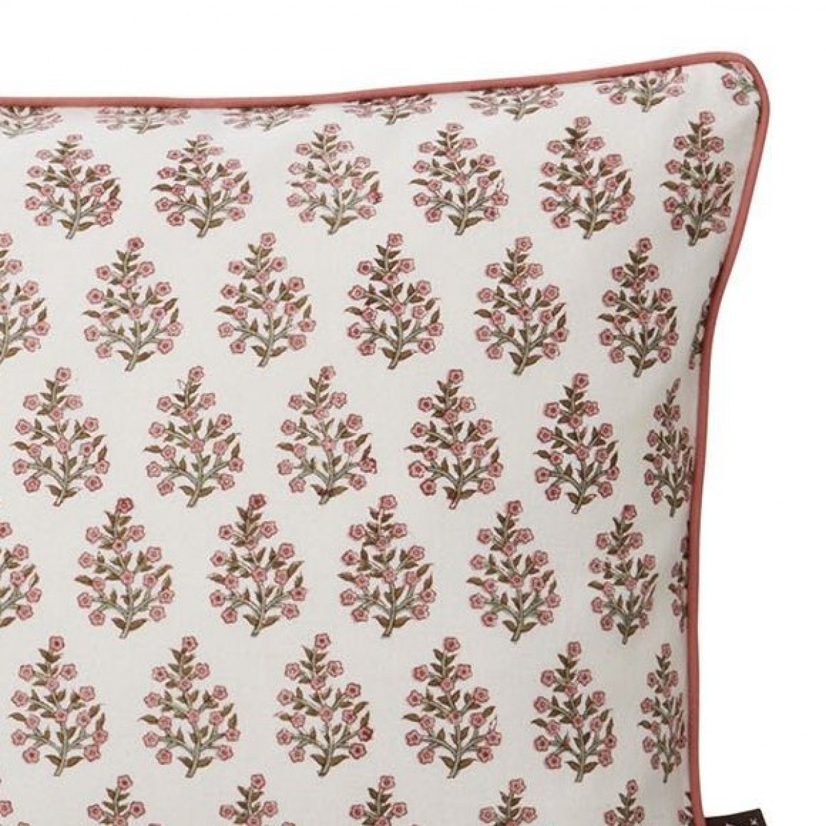 Blockprint Blumen Kissenhülle in edlen Rosenholz Farbennuancen, solitär oder kombiniert ein dekorativer Blickfang.