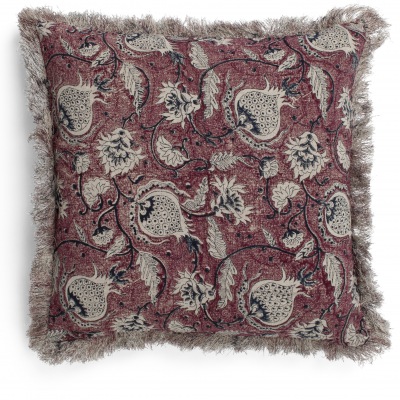 Kissen mit besonderem Charme für ein gemütliches Wohnambiente. Der weiche Leinenstoff von Chamois rot wird sorgfältig von Hand mit Farben aus natürlichen Farbpigmenten bedruckt. Jede Kissenhülle ist einzigartig und bezaubert mit individueller Schönheit.