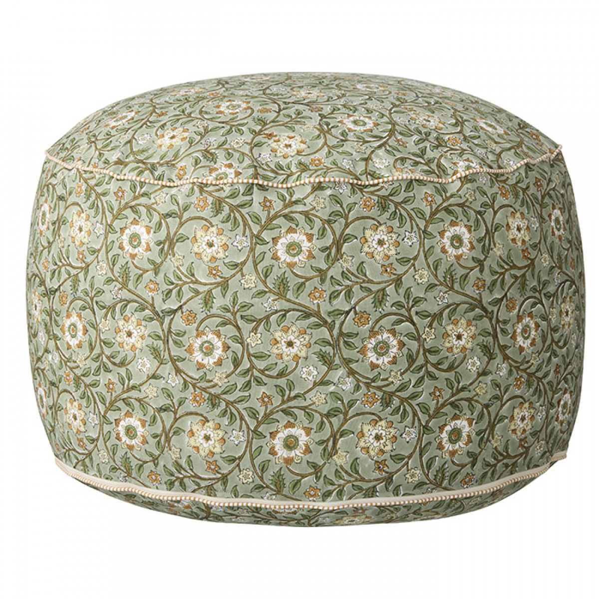 En détail zauberhaft, kleine Quaste und Paspelierung verleihen dem floralen dekorativen Blockprint Muster besonderen Charme.