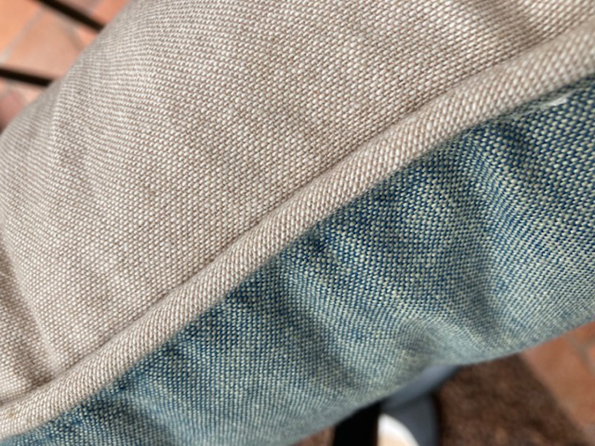 Komfortabler Klassiker aus Frankreich, 2-seitig beige/blau mit Paspel.