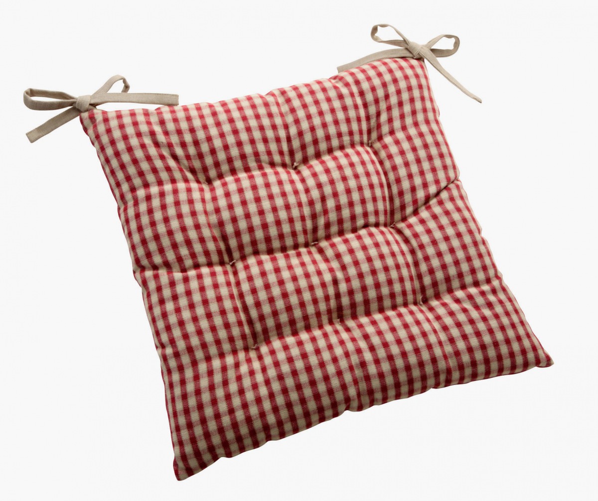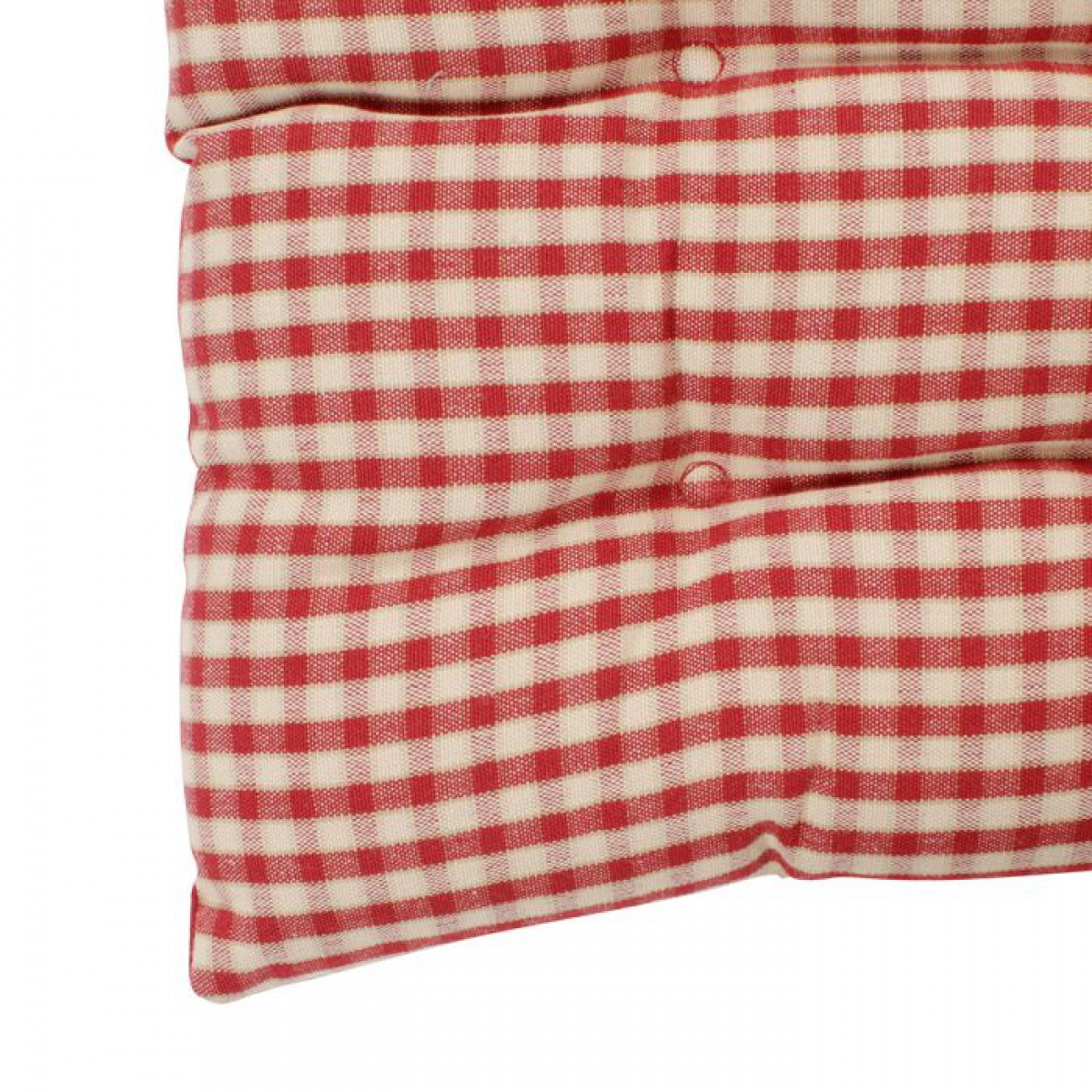 Karo Sitzkissen in rot/beige, Rückseite uni rot, Bändchen in natur gilt als Klassiker Comptoir de Famille Kollektion.