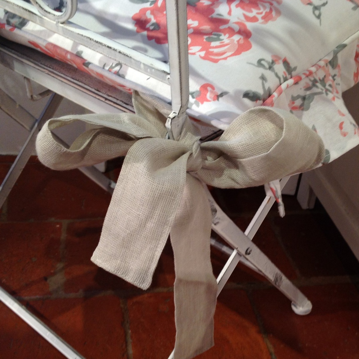 Die Haltebändchen und der Kissenüberzug sind aus 20%Leinen/80% Baumwolle, waschbar bei 30 Grad C.